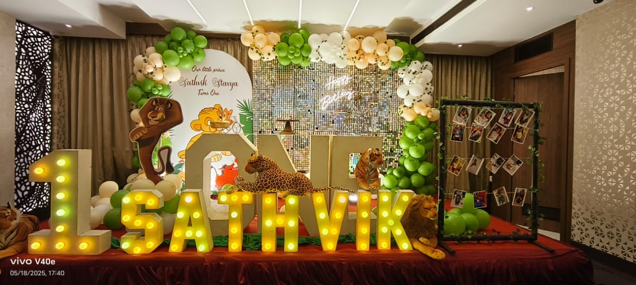 - Theme-Based Birthday Decoration: ₹10,000 – ₹25,000 Backdrops, theme cut-outs, balloon styling, lights, and props.