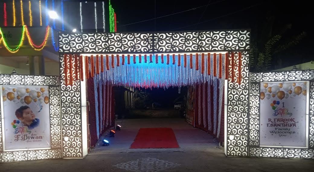 At DayYours, we design custom entrance decorations for all types of venues — from marriage halls and hotels to outdoor lawns and malls. Whether you want a simple floral arch, a grand LED entrance, or a theme-based walkway, our team brings your vision to life with creative detailing and perfect lighting.